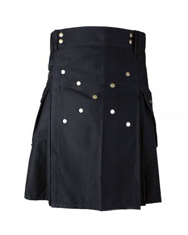 Front Buttons Black Cotton Cargo Pocket Kilt