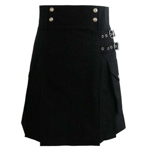 Ladies Black Cotton Utility Kilt