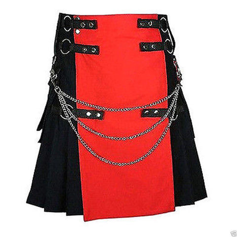 Red & Black Chromed Chain Hybrid Utility Cotton Kilt